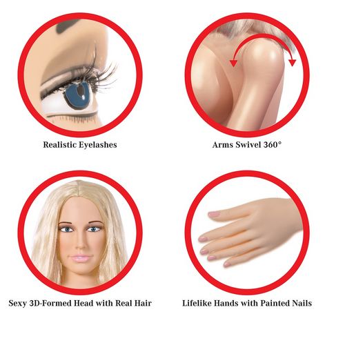 Esta incrível boneca do amor inflável em tamanho real foi meticulosamente projetada com recursos realistas para uma experiência verdadeiramente realista. Sua cabeça formada em 3D sexy apresenta cílios realistas e uma luxuosa cabeça de cabelo real que está implorando para ser puxado! Observe-a realmente ganhar vida com braços que giram 360 graus e unhas e dedos das mãos maravilhosamente pintadas.