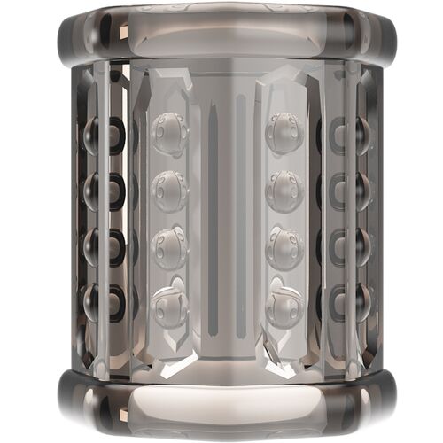 Obtenha esta capa peniana de TPE superelástica para fornecer mais circunferência e satisfação adicional para você e seu parceiro. Esta capa é texturizada, nodulada e nervurada de uma forma única para dar a você e seu parceiro exatamente o que vocês querem e se ajusta perfeitamente à base de sua ereção, aumentando o tamanho, a dureza e a resistência que vocês experimentam durante o sexo.